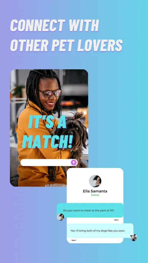◆ Find someone you and your pet will love! With an advanced matching algorithm, you will be sure to form deeper connections based on shared passions, and of course, a mutual love of pets!