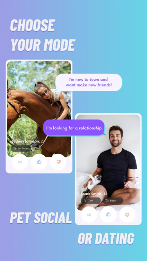 Switch between two modes, Pet Social and Dating, or try them both for a more immersive experience