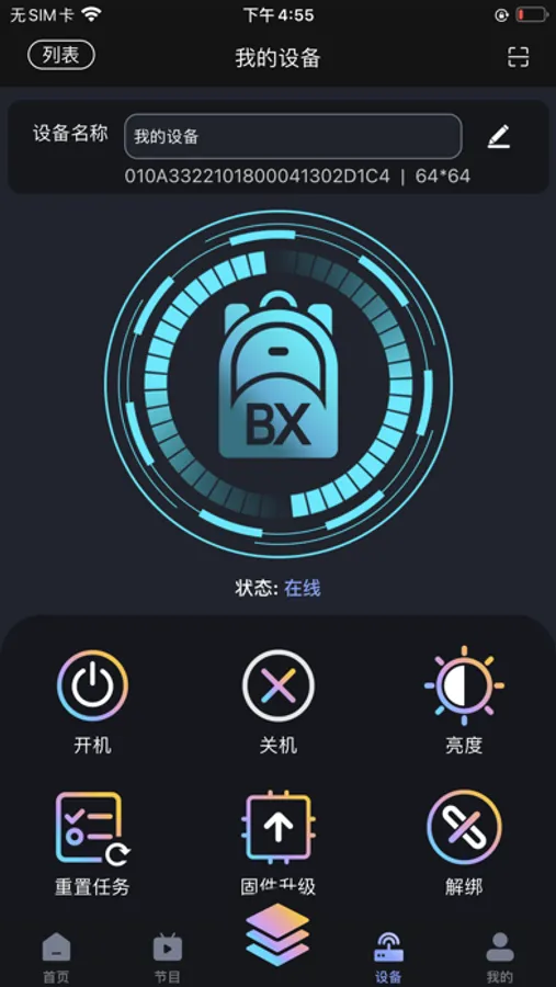 ILedbag App supports text, pictures, GIF, DIY, material library, scoreboard, creative clock, etc; It can perform power on、power off、brightness adjustment,、 update firmware、reset screen.At present, BX-Z01, BX-C01, BX-W01 all support iLedbag APP, professional supporting intelligent cloud LED backpack screen.