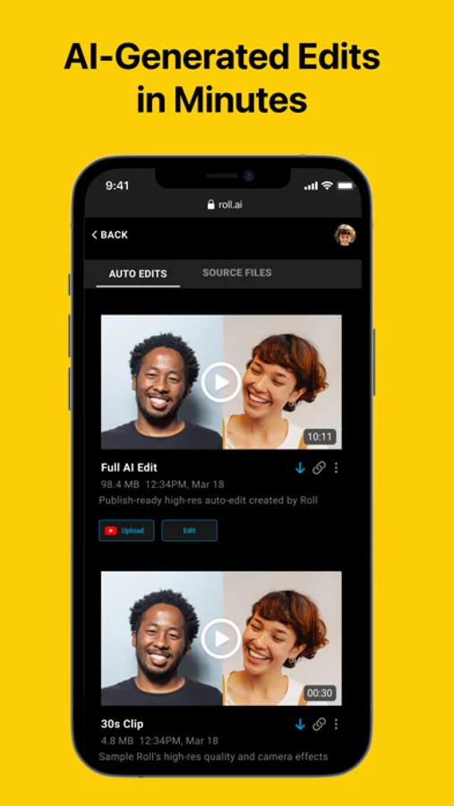 - Auto-Edits: No more time-consuming video editing. Create an automatic, professionally produced and edited multi-camera video, minutes after you finish your shoot. All completely edited by Roll AI.