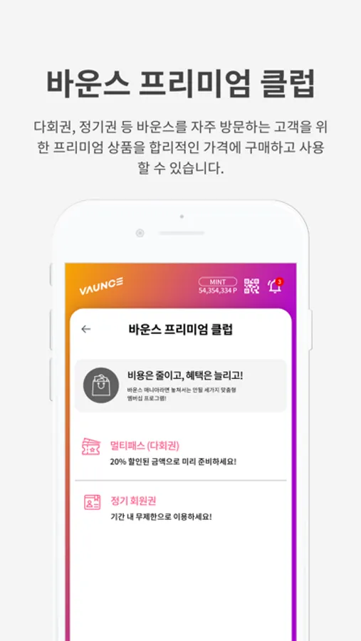 다회권, 정기권 등 바운스를 자주 방문하는 고객을 위한 프리미엄 상품을 합리적인 가격에 구매하고 사용할 수 있습니다.