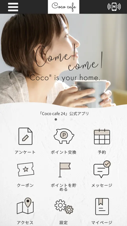 このアプリでは、Coco cafeの最新情報の受け取りや便利な機能を使う事ができます。