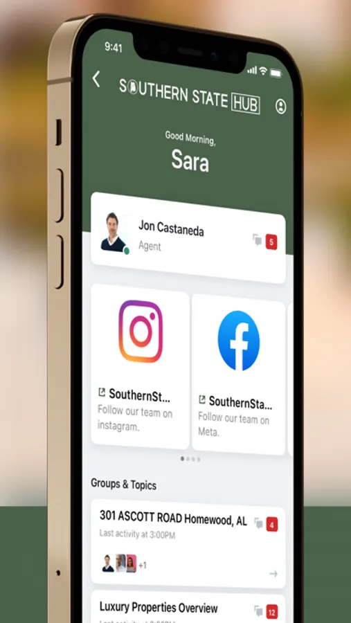 Southern State Realty Partners, brokered by eXp Realty, is a real estate firm based out of Tuscaloosa, Alabama. Our goal is to simplify real estate processes and provide a seamless real estate experience. With Southern State Client Hub, securely interact with our team and gain direct access to all information regarding the real estate transaction — this includes important documents, scheduling video conferences, virtual walkthroughs, and communication via text, audio, and video messages, accessible on a single platform. Additionally, use our app to stay updated on listings and search for properties, along with other shortcuts to useful items.