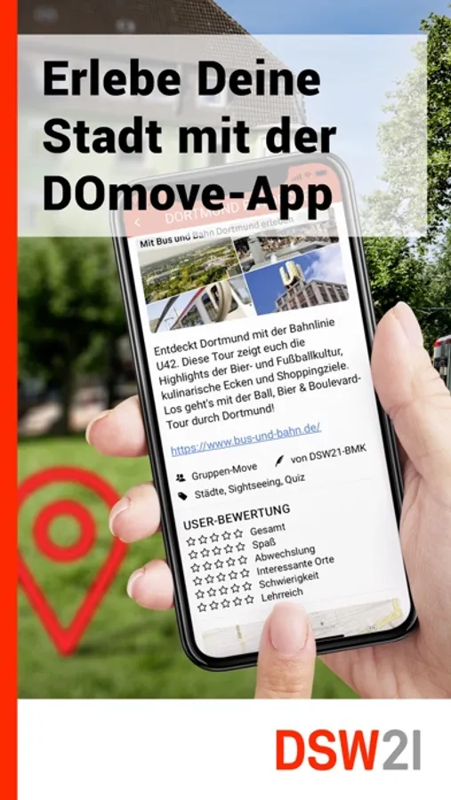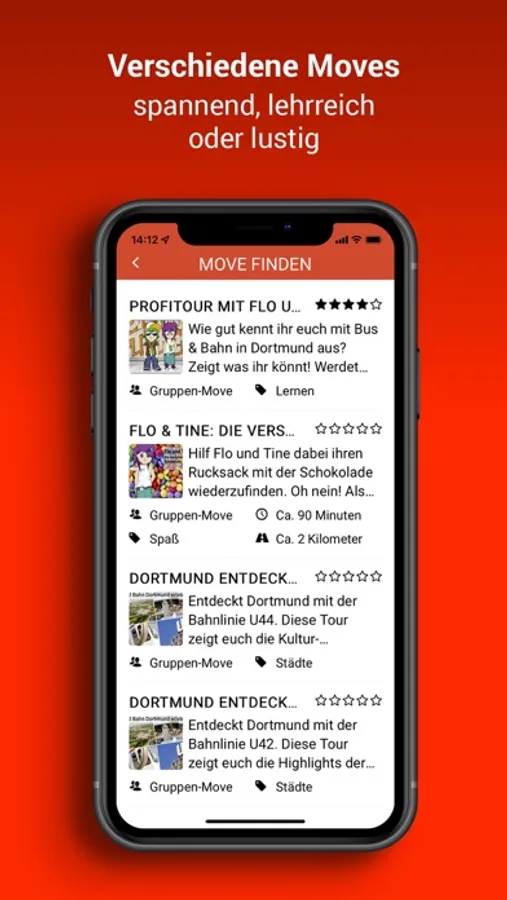Nutze die GPS-Funktion deines Smartphones, um mit unseren Moves Dortmund und Umgebung zu entdecken. Finde spannende Orte, löse knifflige Rätsel und erkunde mit Freunden und Familie deine Heimat.