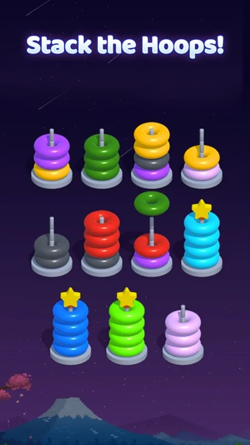 This game will test your intelligence, timing and accuracy! Are you ready to be hooked? Let us solve the hoop stack sorting puzzle together!
