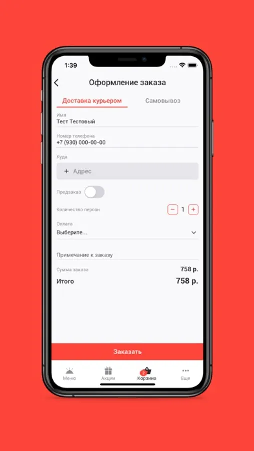 - сохранение истории заказов и адресов доставки в личном кабинете