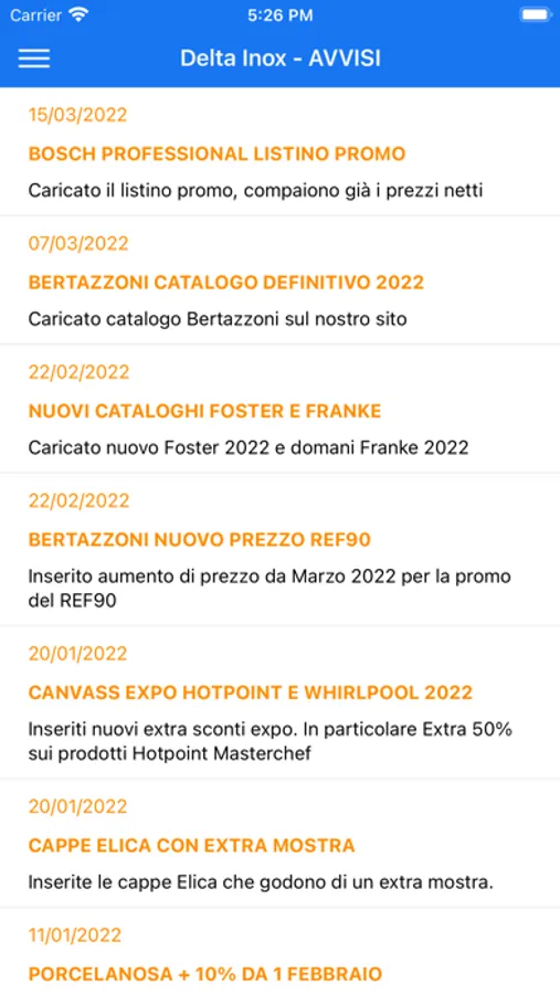 App destinata ai soli agenti dell'azienda DELTA INOX, azienda leader nella distribuzione degli elettrodomestici da incasso e accessori per cucina.