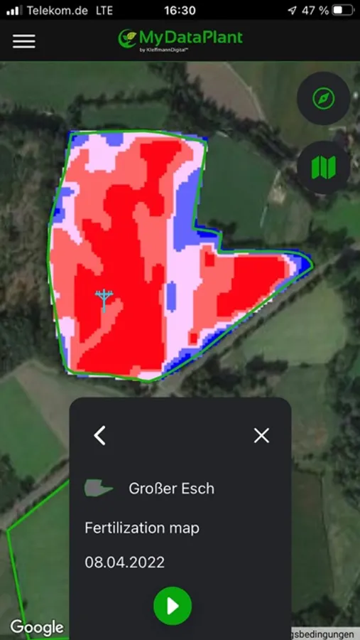 You don't have a modern machine terminal for processing prescription maps? Use our app with your tablet or smartphone in the tractor cab as a guide and adjust fertiliser quantities manually, for example.