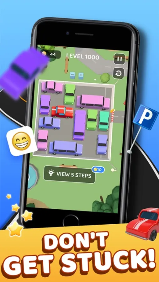 Parking Jam: Mega escape is an addictive and brain-burning puzzle board game. Many cars are parked randomly in the parking lot that may cause serious traffic jams. How do you get out? As the level increases, the difficulty also gets harder. Unprecedented challenges are waiting for you! Are you ready?