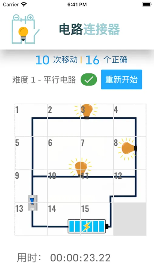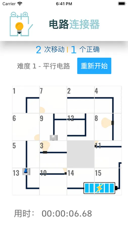 电路卡片拼接是拼图类的子类小游戏,目标是将众多电路拼图碎片集合在一起,完成一张完整的电路图形。