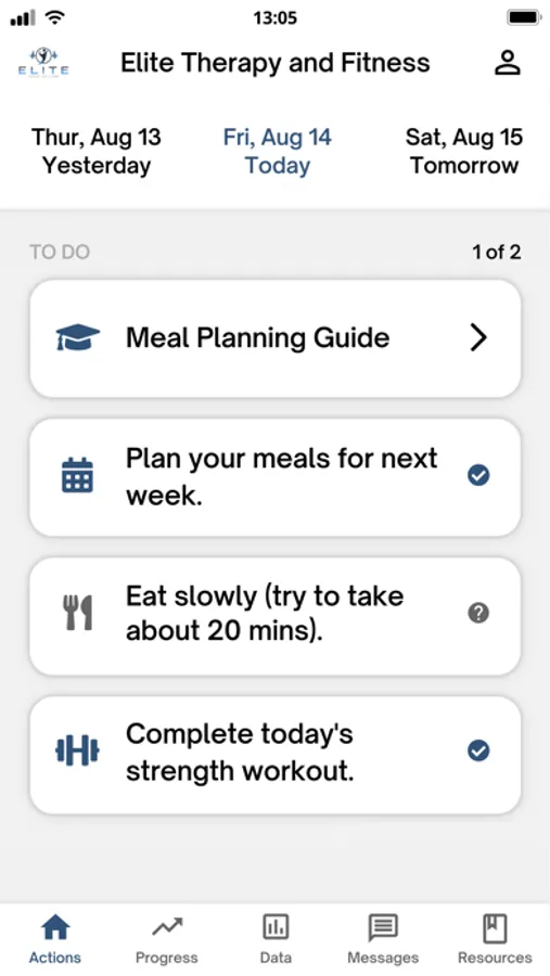 The Elite Therapy and Fitness app is designed for clients of trainers who have enrolled in the Elite Therapy and Fitness program. The app will send push notifications and prompt clients to answer yes/no question in regards to comply with healthy habits sent by your coach.