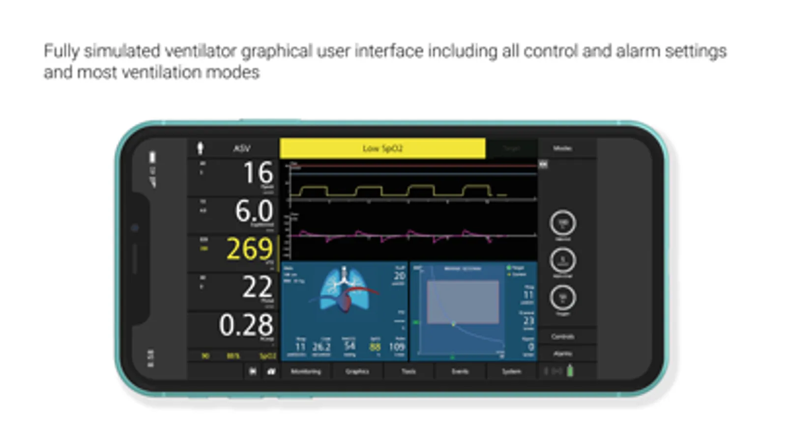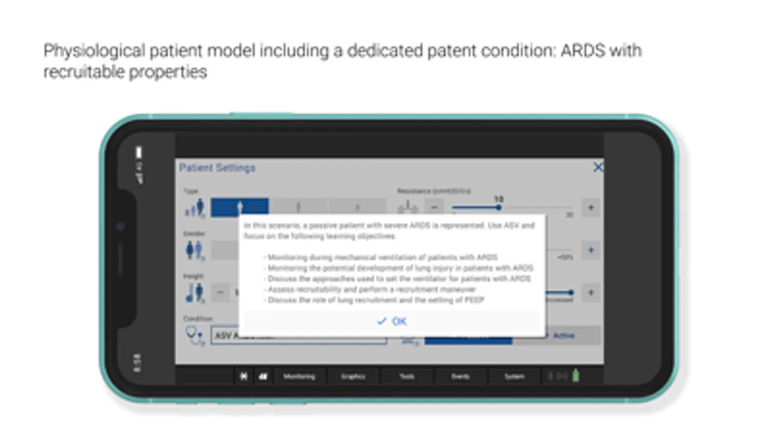 • Choose your patient’s condition and switch at any time - from normal to ARDS