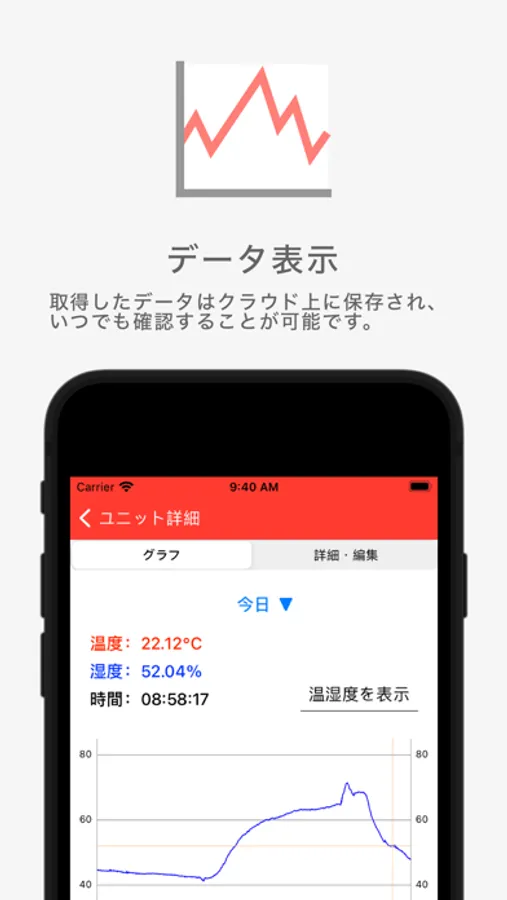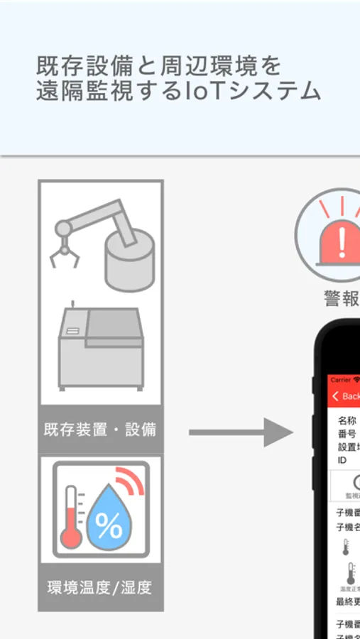 無線子機で計測した温湿度を親機ユニットで収集・送信し、アプリで閲覧できます。