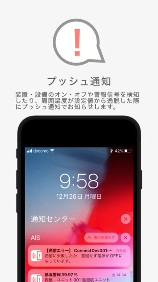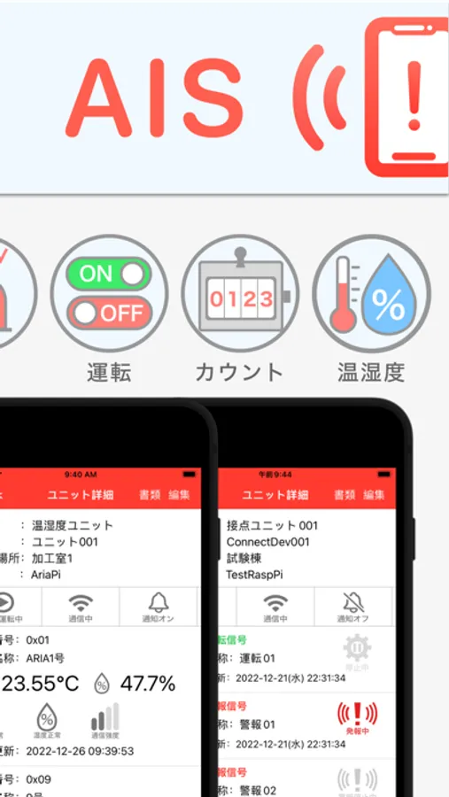 以下のユニットを使用して監視、取得したデータを閲覧、通知の受信ができます。