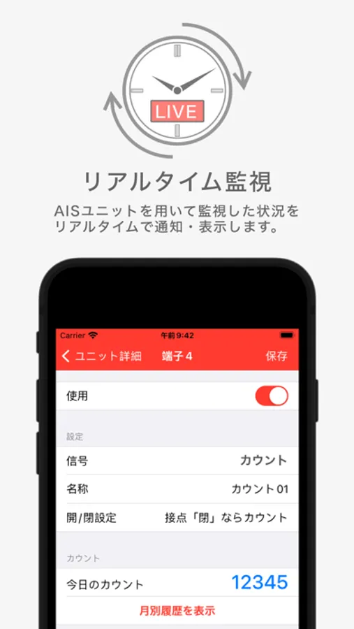 ・カウント:接点の開閉をカウントし生産状況等を記録します