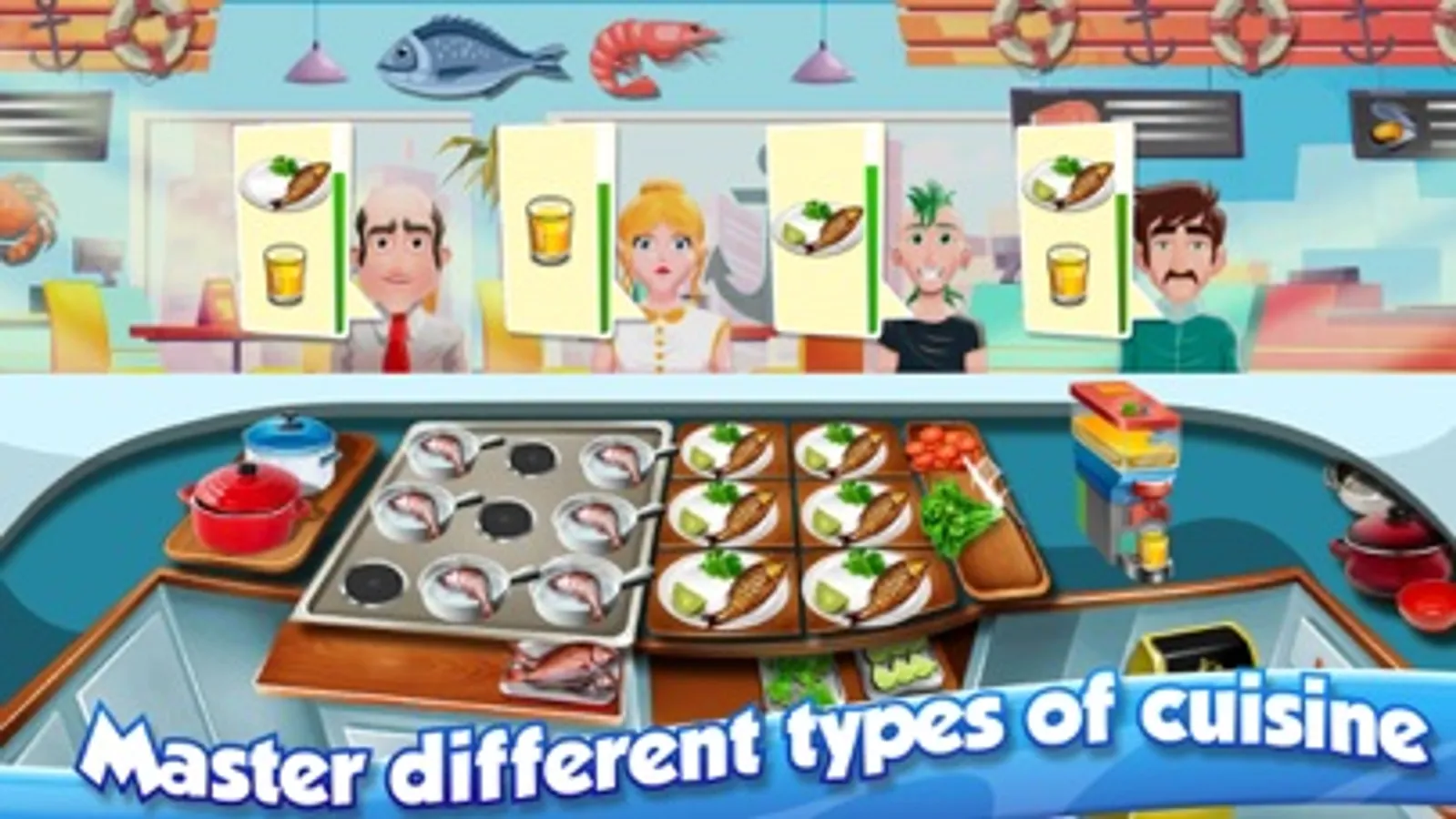 - Unlock more restaurants to learn top class cuisine.