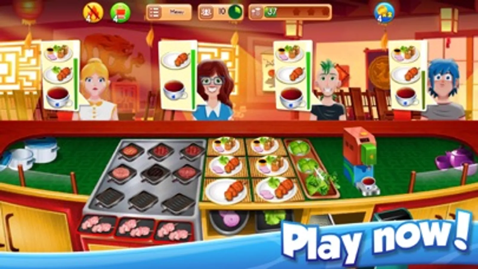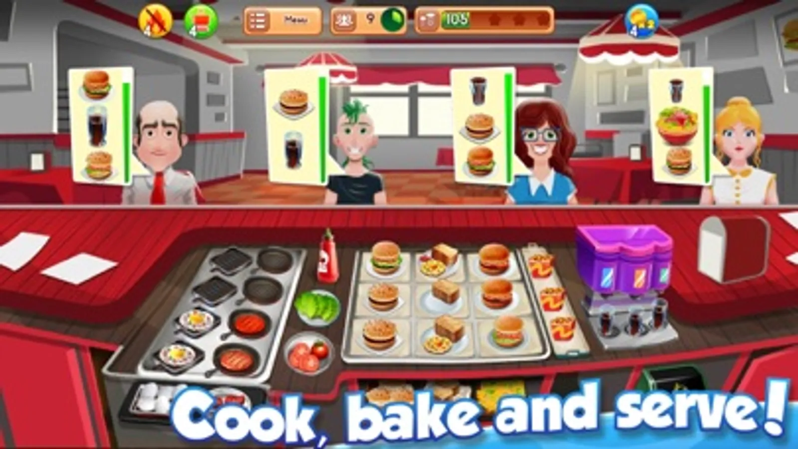 - Enjoy time-management cooking games anytime.