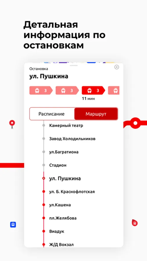 - Узнать расписание и прогноз прибытия на нужную остановку;