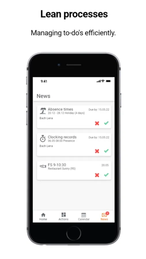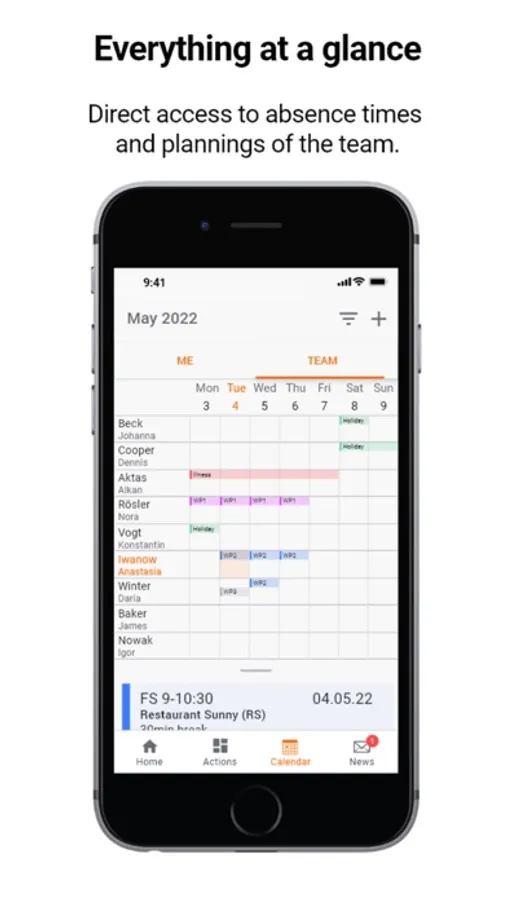 • Immediate viewing and editing of employee absences and schedules - simply on the go via the calendar. Clear and intuitive.
