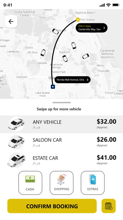 You can place the booking directly on our map, and see how many available cars there are nearby.