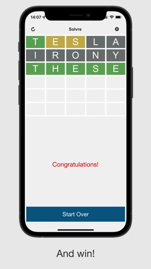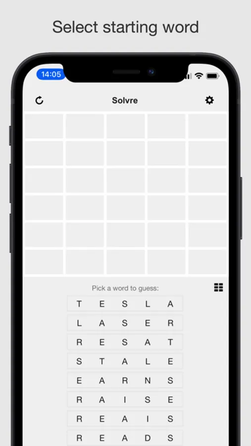 Solvre will suggest the next word to guess in order to find the right word within the 6 attempts available.