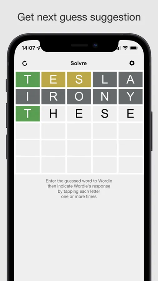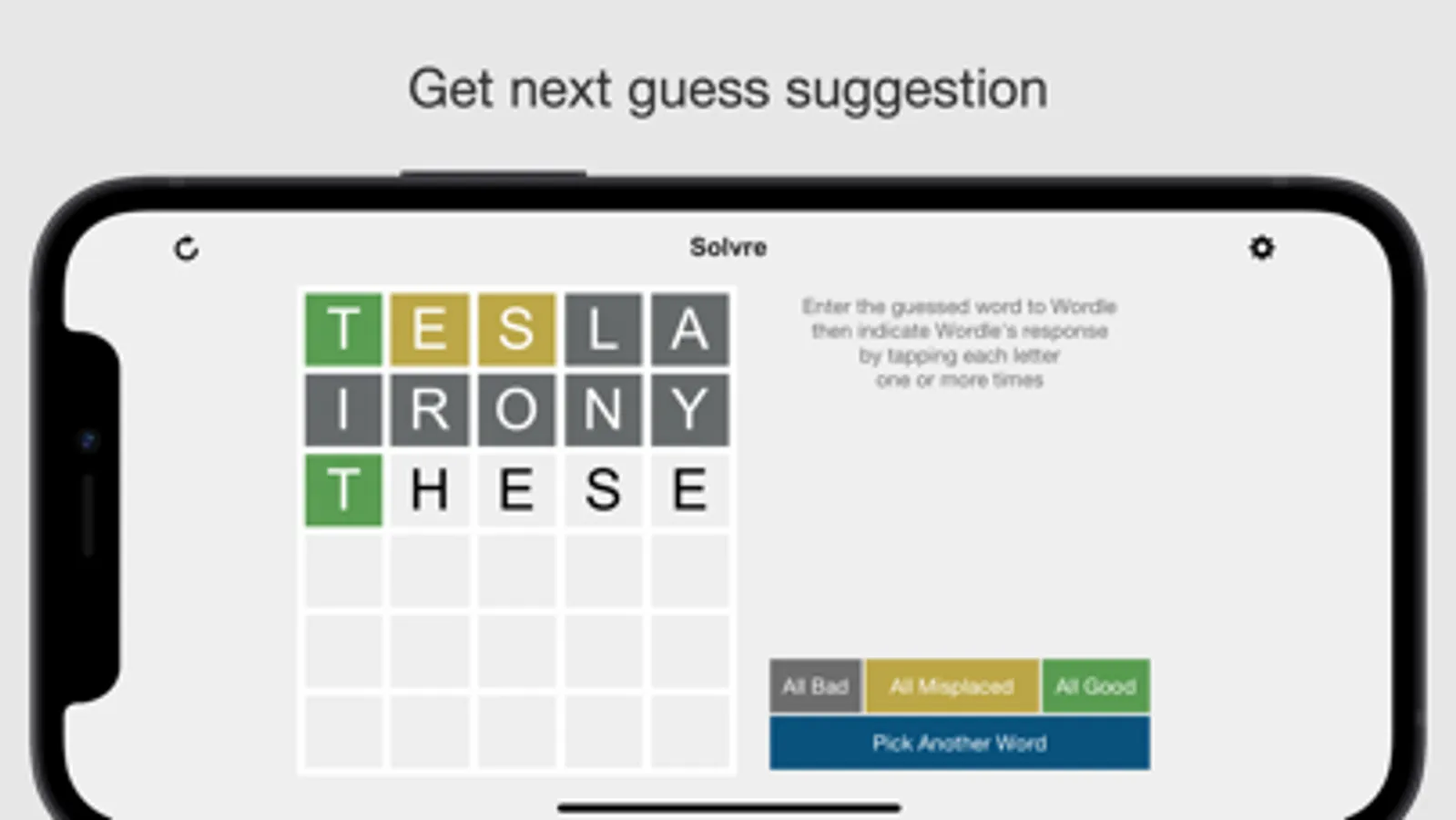 Once you have marked each letter with green, yellow or grey, tap on Next Guess to get the next suggestion.