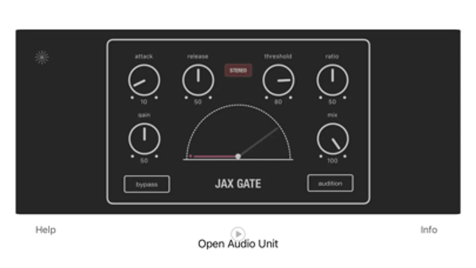The JAX Gate is a dynamics processor in AudioUnit (AUv3) format. The audio unit itself (an app extension) is embedded into a small demo app. This is required for app distribution on Apple platforms. Installing the app will make the audio unit available for system wide usage with audio unit hosts (music apps), which support loading 3rd party app extensions in AUv3 format.
