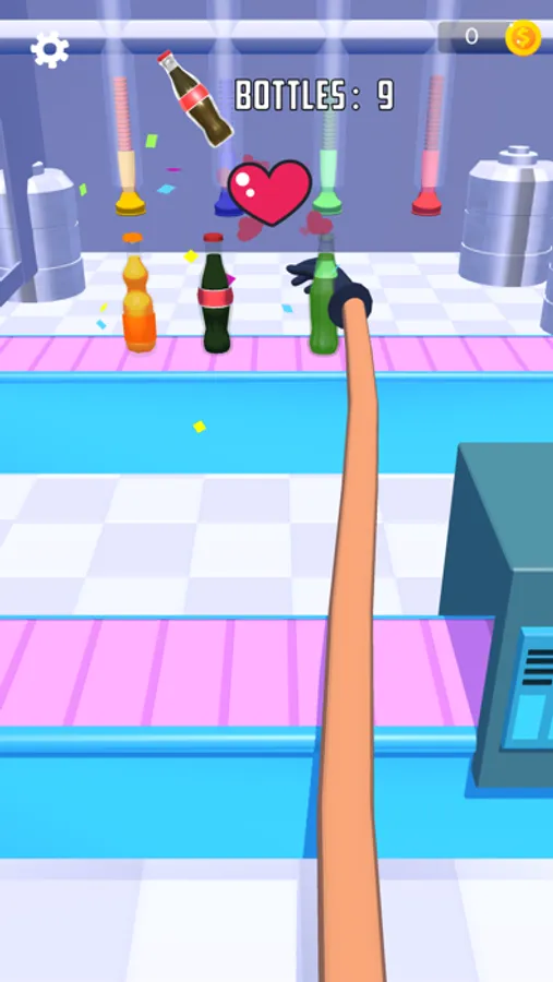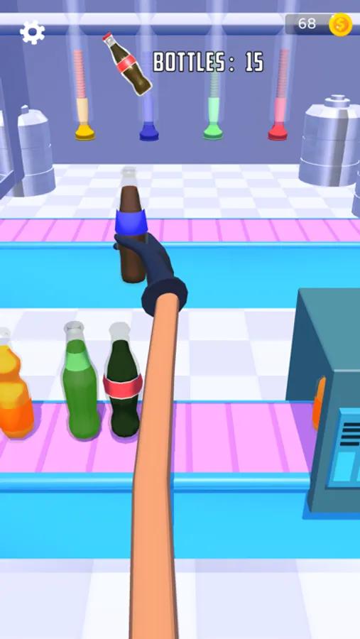 Time to fill the bottles up and full fill the deliveries. Use your elastic hand to grab the empty bottles and cap them with the right color to pass them over. Any wrong caps will be rejected and thrown out of the conveyour belt. Can you cap all the bottles correctly?
