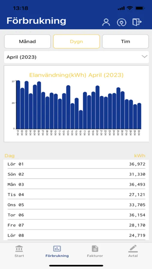 Oavsett om du är elkonsument eller elproducent så kan du se dina månads-, dygns- eller timvärden i appen när du är kund hos Grästorp Energi. Om du bor i en lägenhet, villa eller har en stor gård så är det alltid nyttigt att få tillgång till sin elförbrukning för att kunna sänka sin elanvändning. Med en minskad förbrukning så sparar man inte bara pengar, det bidrar till ett mer hållbart klimatavtryck. Vid din första inloggning kontrolleras dina kontaktuppgifter och du väljer därefter vilken anläggning (om du har flera) som ska vara förhandsvisad på förstasidan.