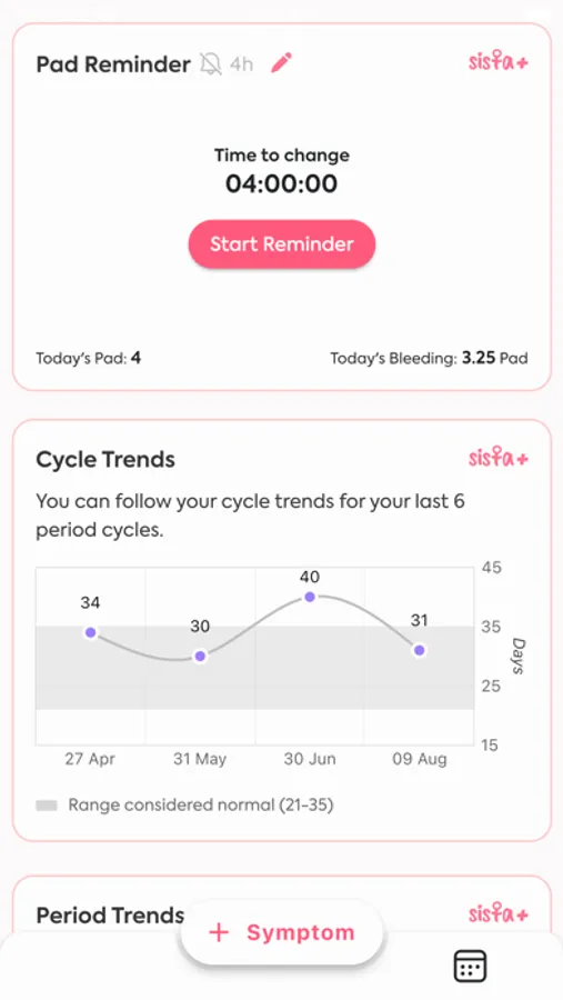 Sista is intelligent period, ovulation, cycle, symptoms, hygienic pad, tampon and menstrual cup tracker without any ads. Also talk with other women and experts on women related subjects in Sista Club.