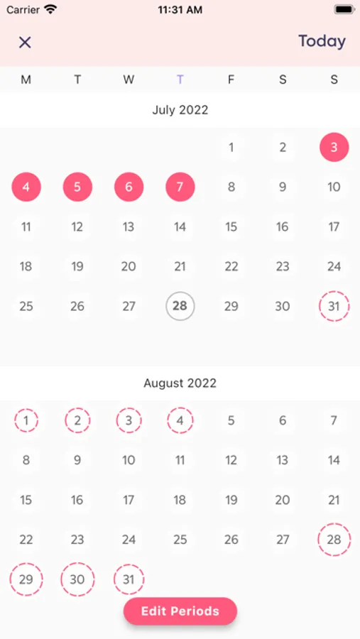 - Configure reminder and be reminded on when to change your pad, tampon and cup