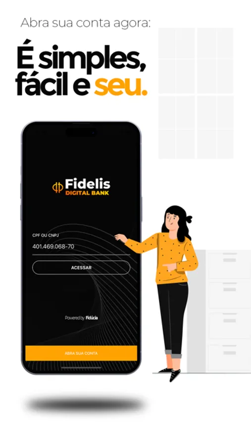 "Abra sua conta digital no Fidelis Bank. Evoluímos cada vez mais para que você tenha a melhor experiência, O Fidelis Bank oferece uma conta corrente completa e totalmente gratuita!