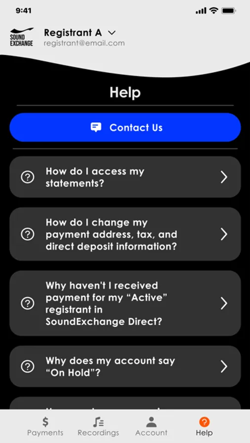 • Have questions about a topic related to your account, payments, or something more general? Reach out to us via the SoundExchange app!