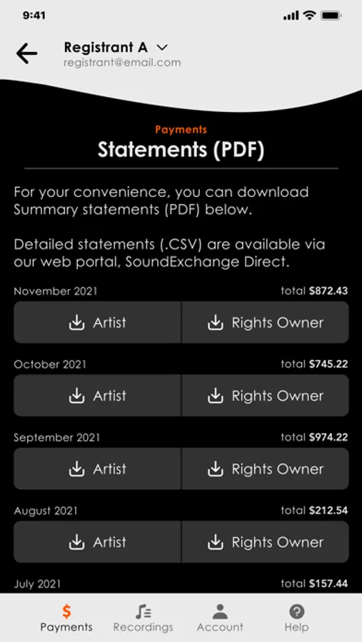 If you are a user of SXDirect you can log into the SoundExchange app and view your details related to the following areas: