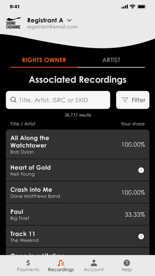 If you have royalty items associated to your account as an Artist or a Rights Owner, you’ll now have the ability to view all associated recordings linked to your account