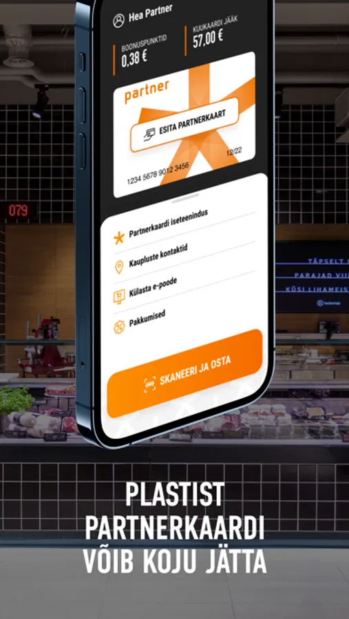 Partnerkaardi äpis on kõik vajalik üheskoos. Äppi kasutades ei pea sa enam ostupulti võtma. Skaneeri kõik kaubad Selveris, Delice´is või Kaubamaja Toidumaailmas mugavalt telefoniga.