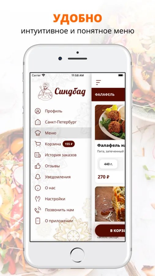 Приложение Синдбад — это удобный способ заказа еды домой или в офис! Мы готовим наши блюда из качественных свежих ингредиентов и доставляем еду в Санкт-Петербурге быстро и бережно.