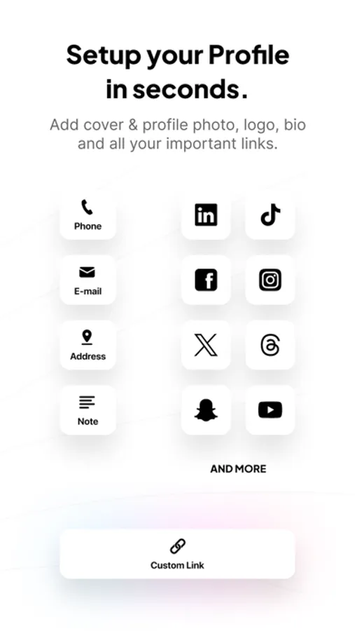 – Profiles can include profile photo, cover photo, logo, job title, company, bio, contact info, social media links and more.