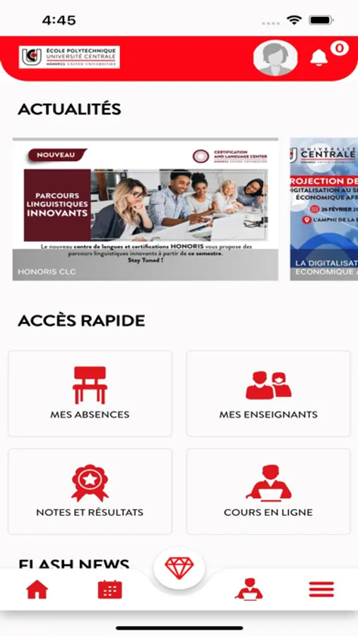 - Voir les actualités et les flashs news partagés par votre école