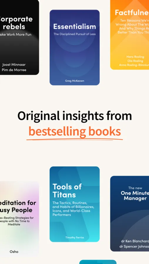 - Don't waste your time searching for more titles and absorb knowledge from famous books even in 15 minutes.