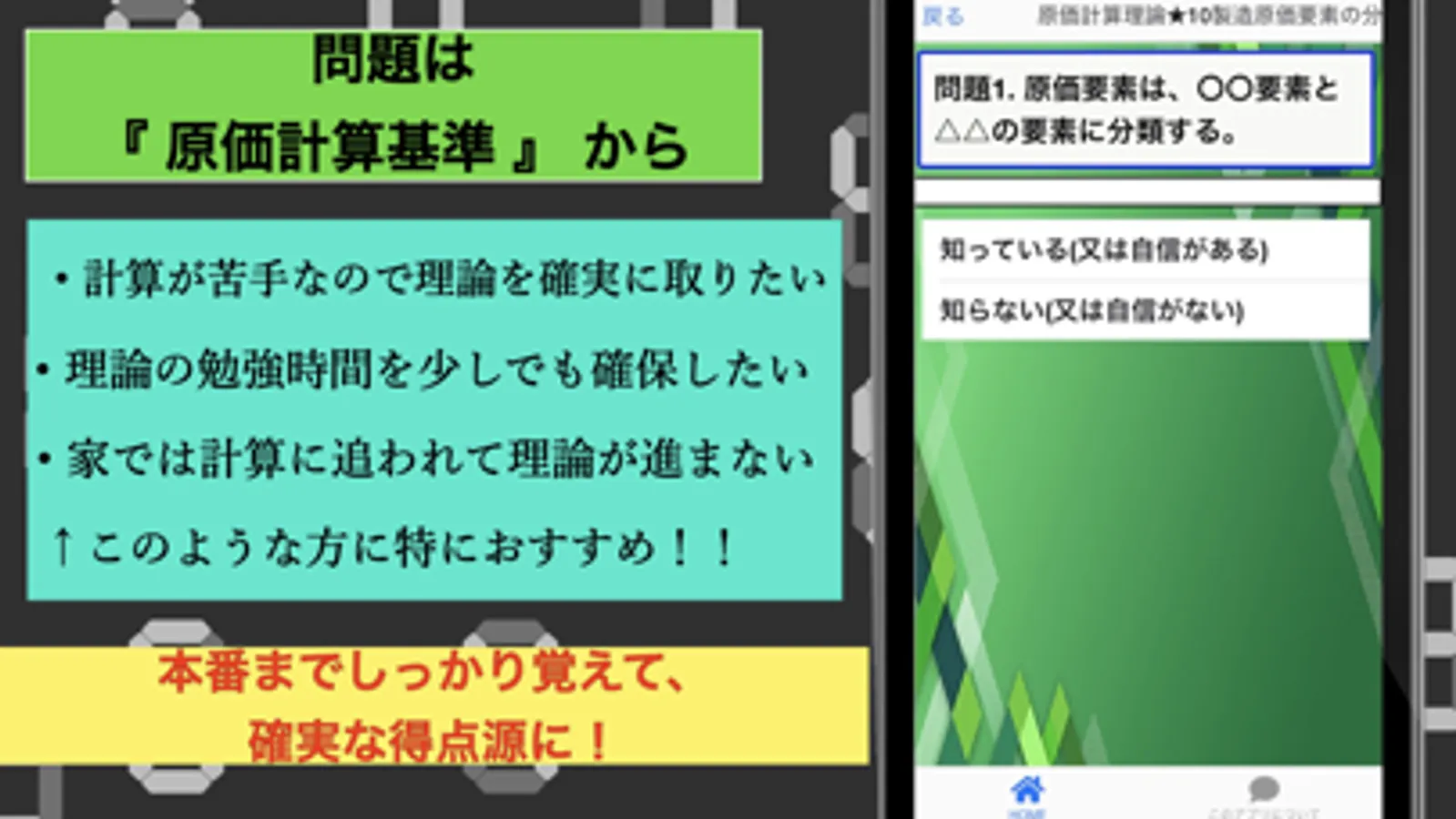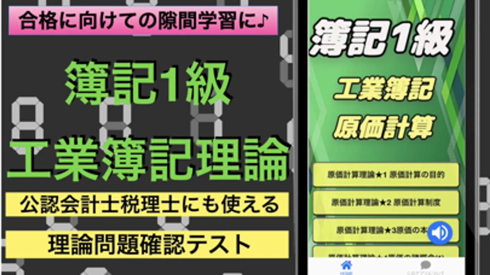 資格試験 簿記1級 工業簿記 原価計算理論 直前理論学習アプリ。