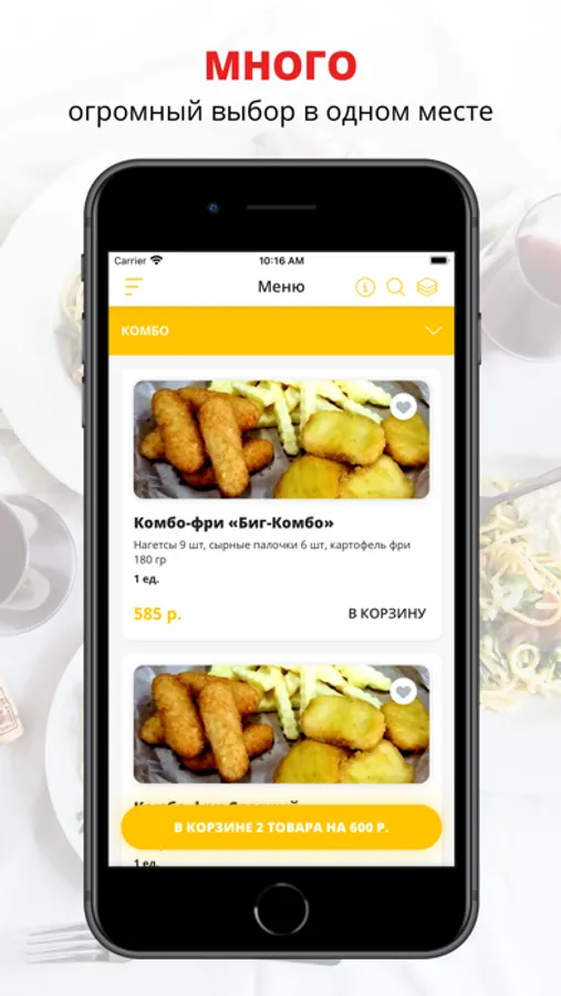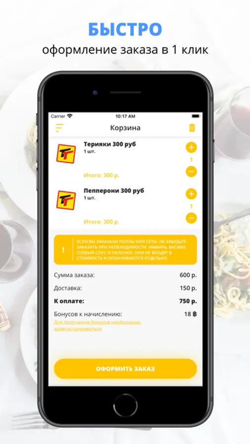 удобная корзина и быстрое оформление заказа,