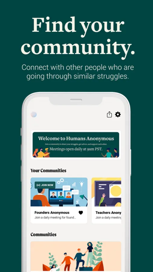 Find communities for breakups, relationships, dating, ADHD, anxiety, loneliness, gratitude, and more. Join a weekly meeting to share your struggles, get advice, and support each other. Connect one on one with other community members.
