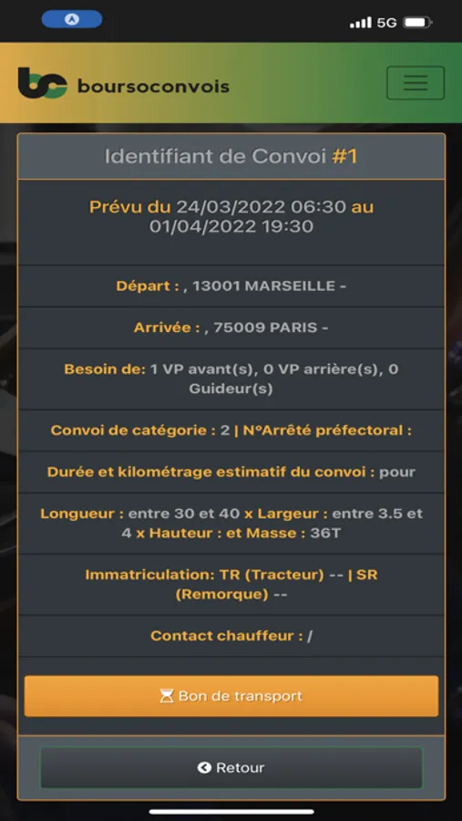 L’application boursoconvois est réservée aux Pilotes & Guideurs de convois exceptionnels inscrits sur la plateforme de mise en relation boursoconvois.com.