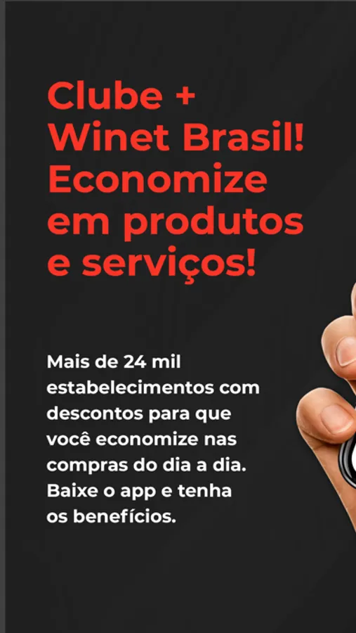A Clube+ Winet Brasil! te dá descontos em compras online e em lojas físicas de todo o Brasil. Com o app do nosso Clube de Vantagens, você acessa as principais marcas do país e utiliza o desconto na hora de pagar, de maneira rápida e sem custo.