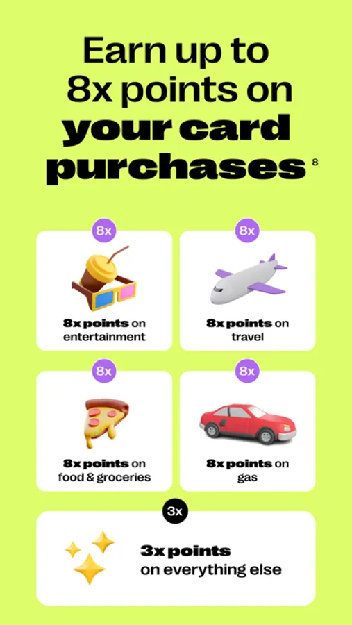 • 8x points on restaurants, food delivery services, travel, entertainment & rideshare