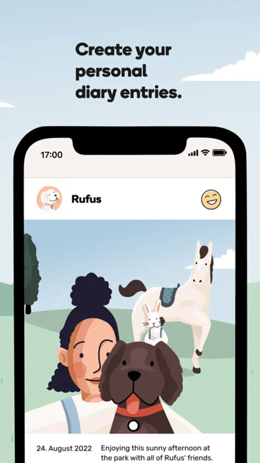 Chronologically document your pet's most delightful moments with photos or videos in your personalized diary feed. Share selected memories with family and friends, and use the text field to record important information or personal thoughts. Track your pet's mood with the Mood Tracker, as well as time, duration, and location.