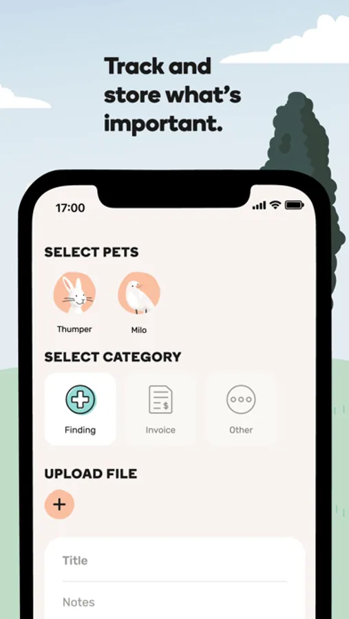 Safely store all your pets' documents and information in one centralized, easily accessible digital location. Always have essential details at your fingertips and share them quickly when needed: identification numbers (EU pet passport, Tasso), key metrics (e.g., dimensions, weight), records (e.g., vaccinations), contact information (e.g., veterinarian, groomer), test results (e.g., allergies, X-rays, MRI), or progress documentation.