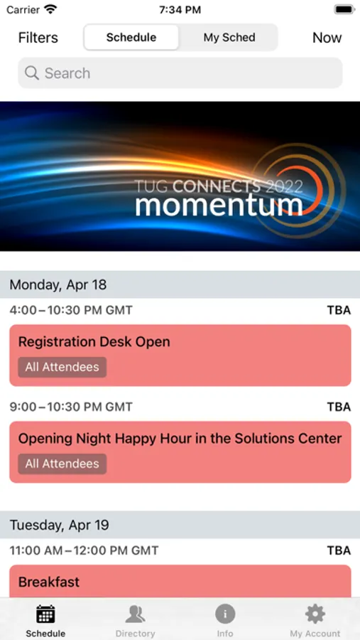 Conveniently browse the entire schedule for TUG CONNECTS 2022 momentum. Get the key information of your event without ever having to crack open an event guide.