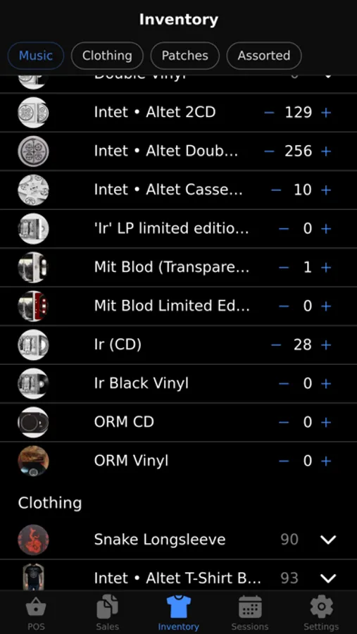 Instead of tracking sales by hand at each show, use Possum to sell your Bandcamp items physically, automatically tracking items sold, revenue, and synchronizing stock and inventory to your online Bandcamp page.
